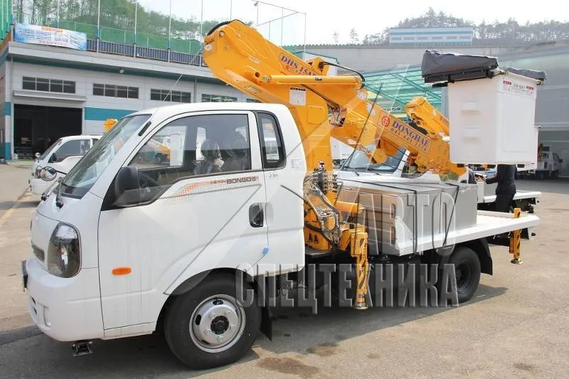 Автовышка Donghae DHS15AP корейского производителя Donghae Machinery подходит для работ в сферах городского и коммунального хозяйства в Улан-Удэ: выполнение электромонтажных работ, монтаж рекламных щитов и конструкций, ремонт кабельных линий. Также может использоваться в строительных работах. Она состоит из бортовой платформы и крановой установки с рабочей высотой стрелы 14,5 м.